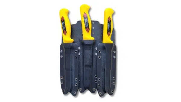 Die Köcher aus regeneriertem ABS sind sehr leicht zu reinigen und stabil. Der große Ausschnitt an der Unterseite ermöglicht es auch größere Teile aus dem Köcher zu spülen oder mit einer Bürste zu reinigen. Die Köcher sind einzeln herausnehmbar und austauschbar. Der Lochabstand der Basisplatte erlaubt auch die Montage von Kydex-Scheiden.