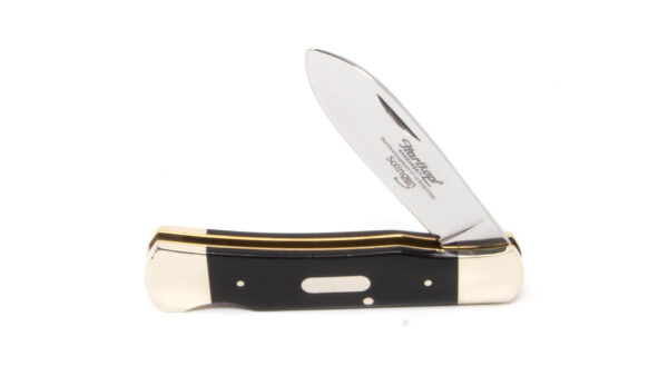 Bereits in der vierten Generation entstehen Taschenmesser höchster Qualität beim Solinger Familienunternehmen Hartkopf. Die Klinge ist aus dem rostfreien Stahl 1.4110 hergestellt, der mit einer Rockwellhärte von 56 HRC über eine gute Schnitthaltigkeit verfügt. Elegante Ebenholz-Schalen bilden zusammen mit den Neusilberbeschlägen und Messingplatinen ein stilvolles Heft, das von einer kleinen Gravurplatte ergänzt wird. Das Hartkopf Taschenmesser arretiert die Klinge mit einer klassischer Rückenverriegelung.